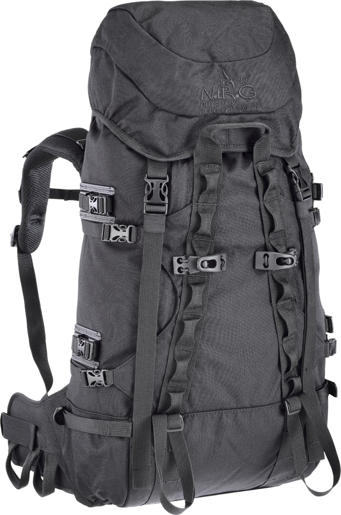 Lo zaino è costituito da 1 compartimento generale, di facile accesso, con tre tasche interne ed un cappuccio di chiusura. – Una di queste tasche è un marsupio, amovibile, fissato allo zaino con nastri a strappo e riposizionabile anche esternamente, sotto il cappuccio per essere a portata di mano senza dover aprire lo zaino. – 1 tasca nel cappuccio accessibile dall’esterno, con zip. aprono facilmente e totalmente con cerniere top quality e garantite: b) 4 placche portasci-portamateriali con cinturini di contenimento c) 2+2 asole speciali semirigide sulla cintura a vita per attacco materiali (moschettoni, ecc.) di pronto impiego. d) 2 fascette modulari verticali (formate da un unico nastro piegato) con: – 7 posizioni ciascuna per attacco accessori – 2 ganci di plastica (uno su ciascuna) e) 4 asole portapiccozza sul fondo. f) 4 fasce triangolari stringizaino per chiusura supplementare del carico e maggiore copertura e protezione cerniere e impermeabilità. g) 2 taschine “contieni base sci” con cinturini di compressione laterale/fondo. h) 2 maniglie per trazione di emergenza (1 nella parte alta dello schienale e 1 formata dalla piega delle 2 fasciette modulari sul fronte zaino). i) Ganci/leve/accessori: di marca riconosciuta: NEXUS ITW + DURAFLEX NATIONAL MOLDING. l) Materiale zaino : 900 Denier Poly (MILITARY SPEC). Volume: 50 litri Peso: Kg. 2,2