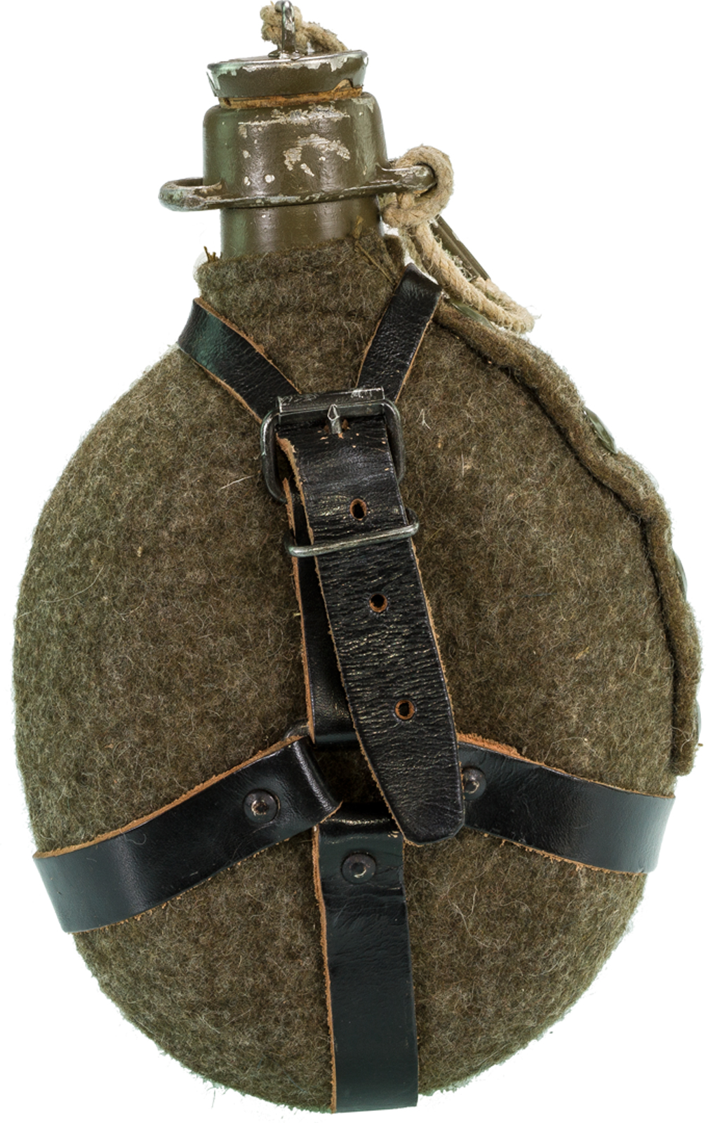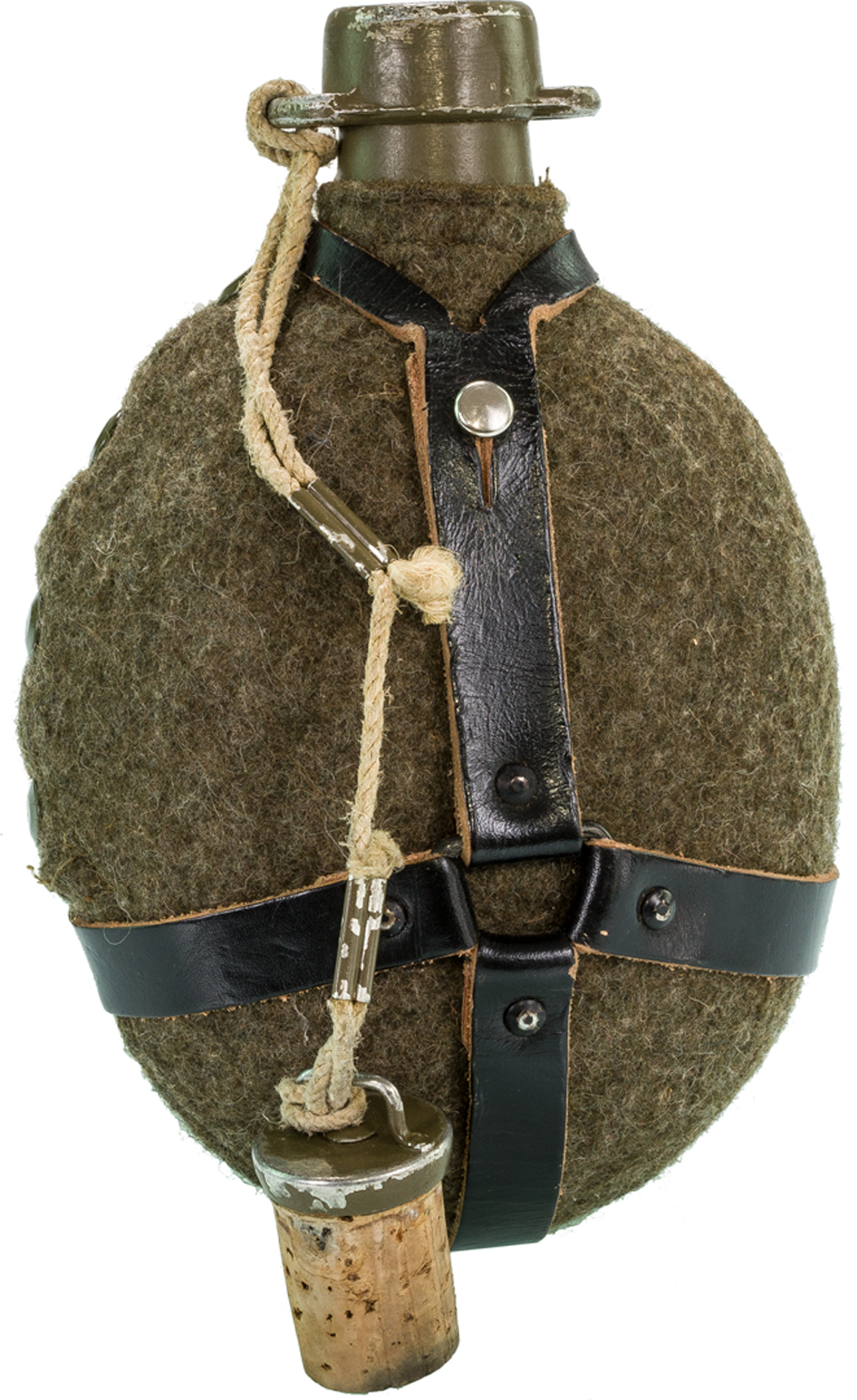 Articolo nuovo di magazzino Ex dotazione Esercito cecoslovacco anni 1950 1960 Epoca patto di Varsavia Produzione Ceca Cinghietta in cuoio nero Passante in cuoio nero sganciabile Fodero in tessuto lana cotta Bottoni automatici di chiusura in metallo verniciato Custodia imbottita per mantenere inalterato il contenuto Contenitore in alluminio verniciato verde scuro esteriormente Capienza borraccia 1 litro Tappo di sufhero a pressione ancorato con cordino per non perderlo NB: Articolo d'epoca privo di certificazioni