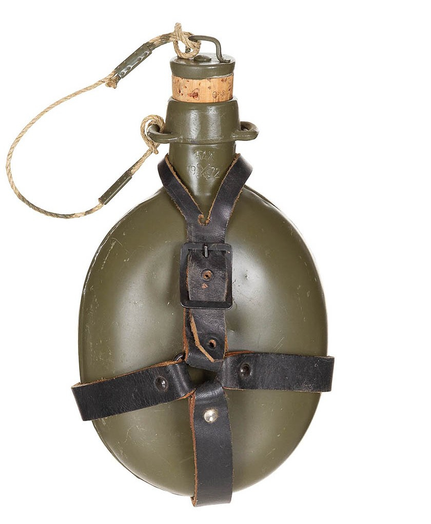 Articolo nuovo di magazzino Ex dotazione Esercito cecoslovacco anni 1950 1960 Epoca patto di Varsavia Produzione Ceca Cinghietta in cuoio nero Passante in cuoio nero sganciabile Contenitore in alluminio verniciato verde scuro esteriormente Capienza borraccia 0,75 Tappo di sughero a pressione ancorato con cordino per non perderlo NB: (Articolo d'epoca privo di certificazioni) peso complessivo 220 gr