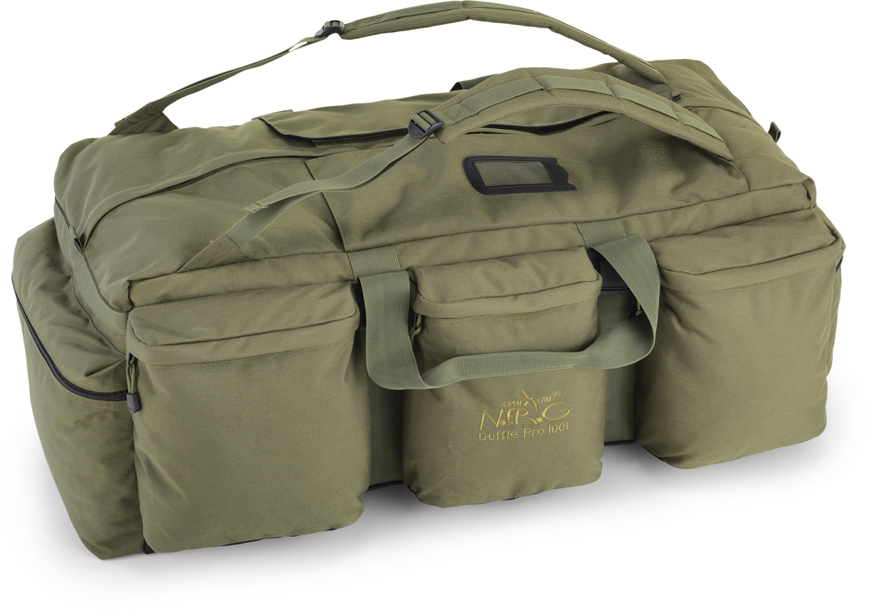 Nerg 100 litri portanome superiore possibilità di usarlo anche come zaino in quanto spalleggiabile in cordura 600 denari 5 tasconi enterni spallacci imbottiti regolabili maniglie di trasporto cerniere lampo Ykk base gommata