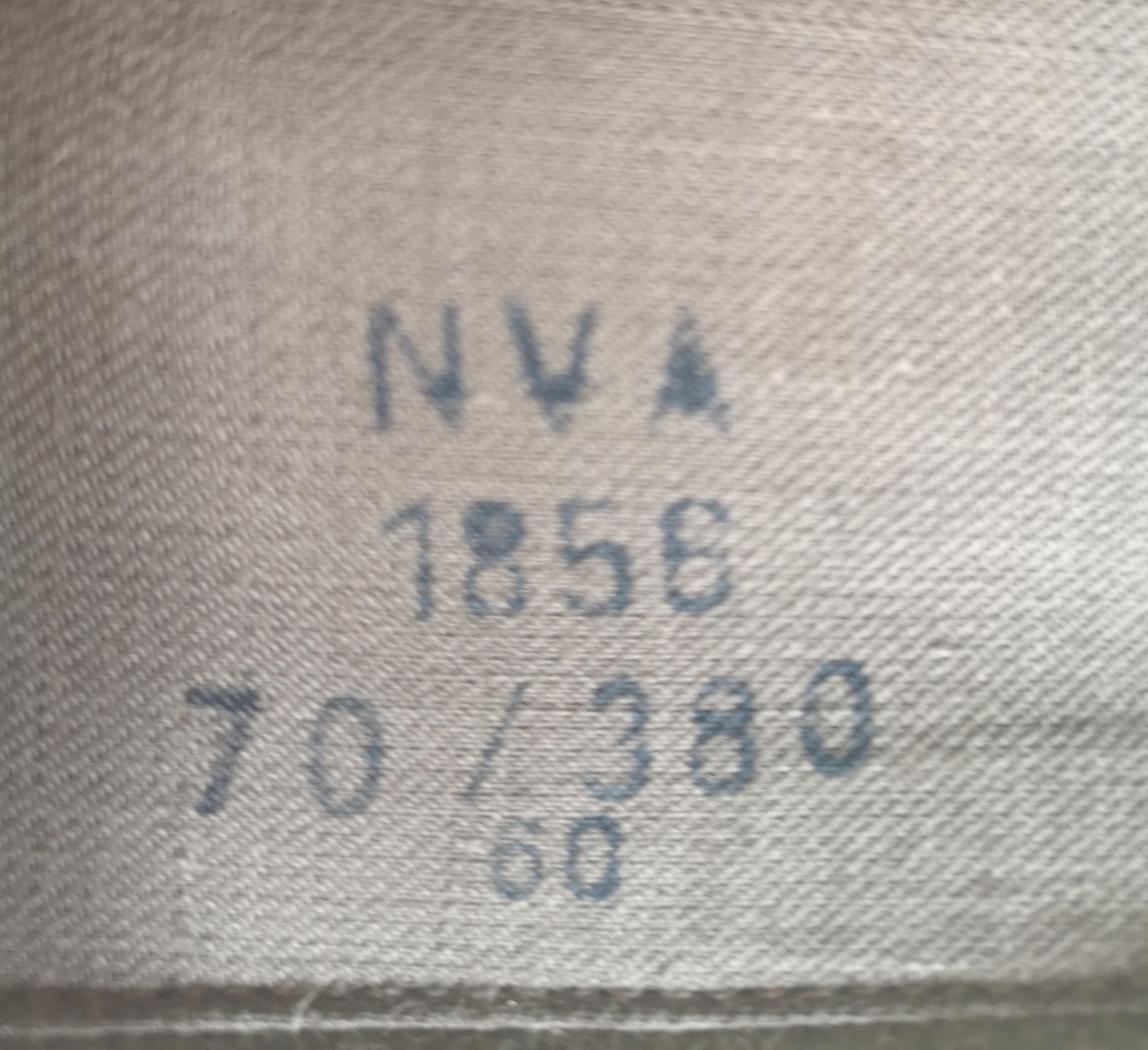 anni 1980 nuova in panno di lana invernale internamente foderata in tela di cotone ottimo stato di conservazione colore grigio verde completa di fregio ricamato ideata per il dienst anzug ovvero l'assetto in servizio in zona non operativa N.V.A..( Nationale Volks Armee )