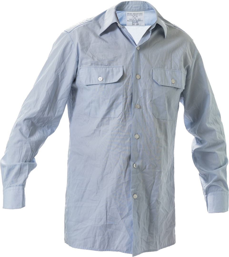 Manica lunga kölner wäskefabric luftwaffe (bundeswehr) composizione 50% poliestere 50% cotone tessuto leggero antistrappo colore azzurro chiaro originale ex dotazione anni 2000 usatosurplus militare di prima scelta modello manica lunga da uomo vestibilità ampia colletto semirigido priva di spalline asole per infilare eventuali spalline spallone rinforzato con tessuto doppio 2 taschini frontali chiusi da bottoni peso 260 gr