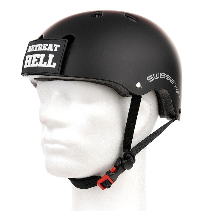 Casco classico allenamento Swiss Eye nero. Velcro sul lato anteriore e posteriore. Cinghia guida per far scorrere le cinghie in posizione. Peso 486 gr. Materiale: ABS / EPS. Questo casco è stato certificato secondo i requisiti di sicurezza EN 1078, della direttiva 89/686 / CEE del Consiglio UE. NB: Il patch anteriore non è incluso Peso (gr):425.00