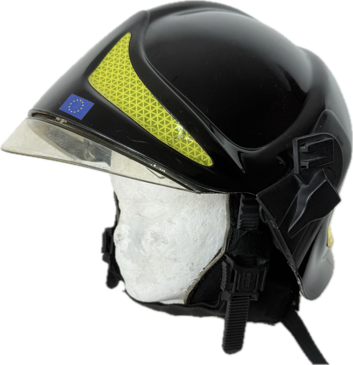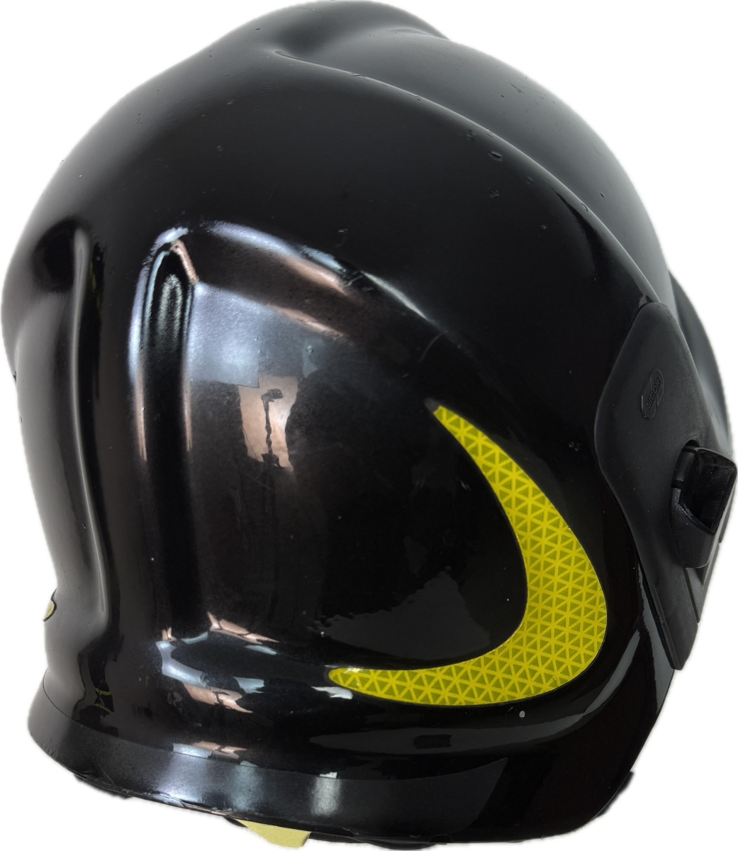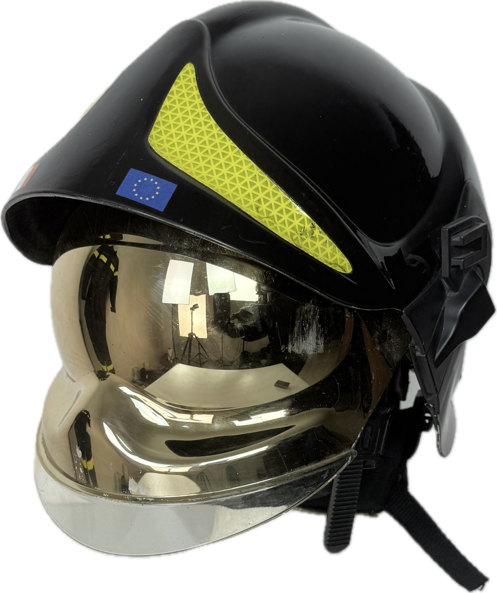 Casco protettivo originale SICOR, ex dotazione dei Vigili del Fuoco Italiani, modello 2. Proveniente da surplus operativo, è proposto come articolo decorativo e da collezione.