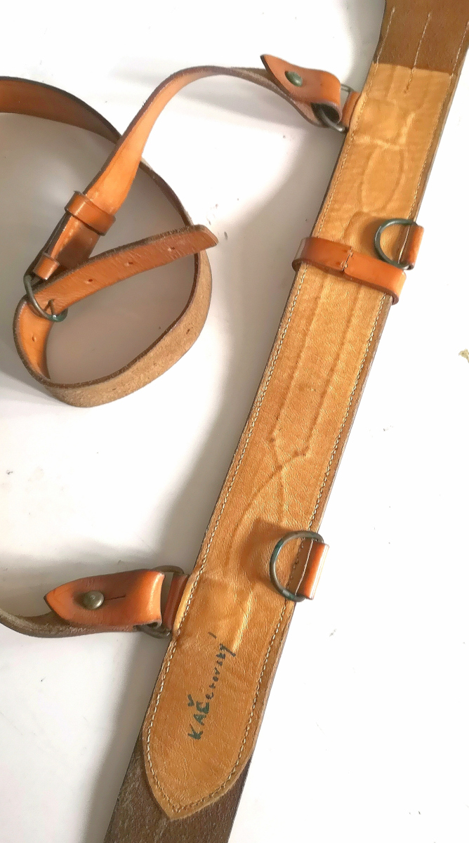 Ceskoslovenska socialisticka republika CSSR Originali Prodotti in Cecoslovacchia vero cuoio usati prima scelta fibbia metallica doppio ardiglione il colore potrebbe variare nel tempo con l'esposizione alla luce solare 4 anelli fissati al cinturone in cuoio neutro tracolla regolabile cinturone regolabile altezza cinturone 5 cm Peso 375 gr
