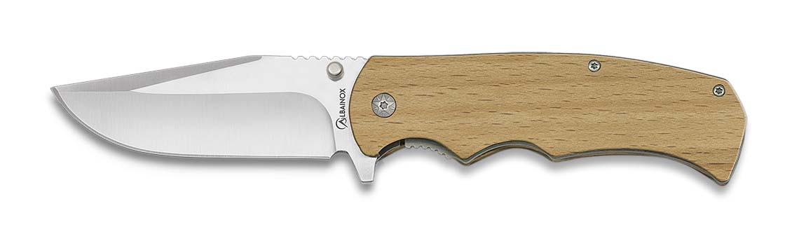 lavorazione semiartigianale nottolino sulla lam per apertura ad una mano articolo di importazione acciaio inox satinato impugnatura in legno chiaro lunghezza lama 8,8 cm