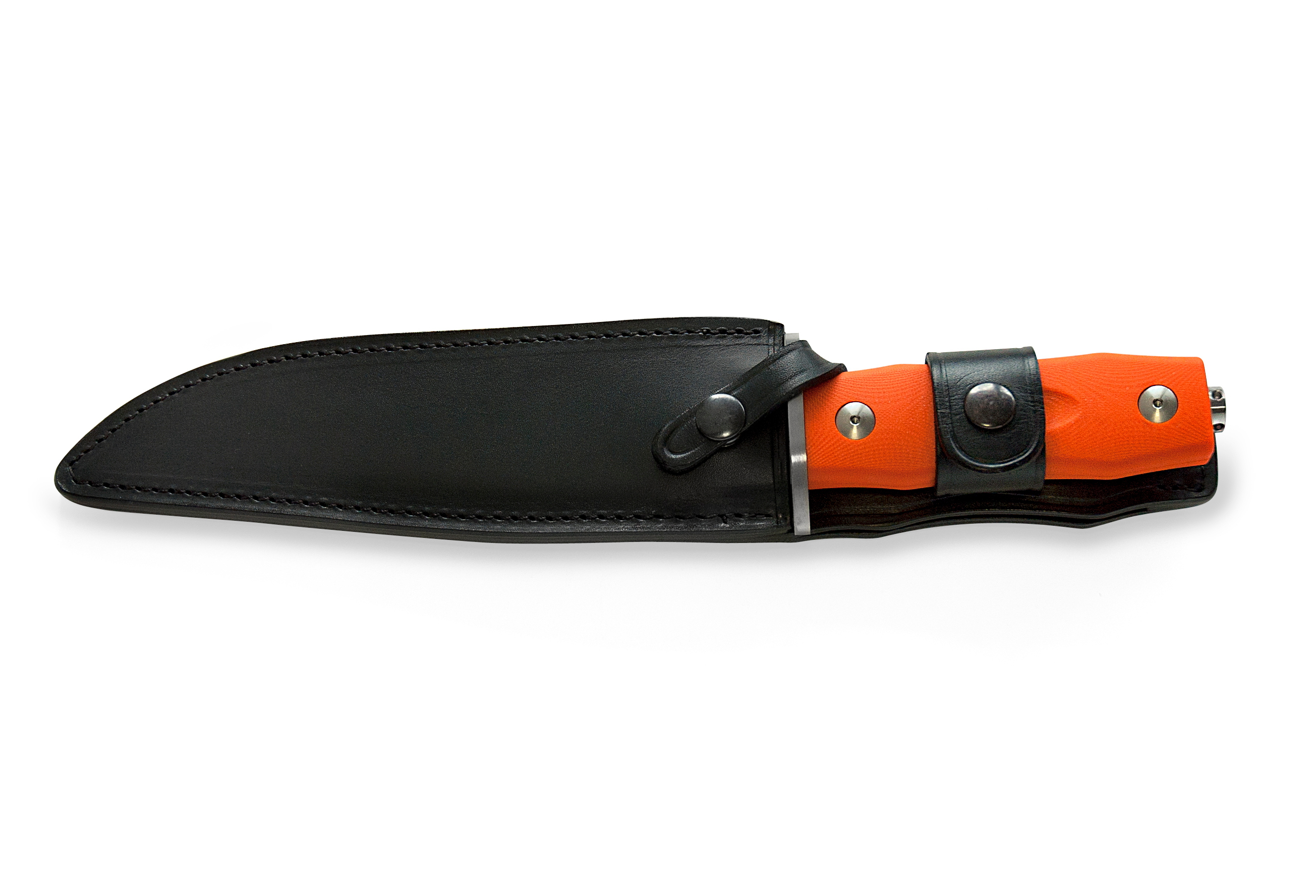 Lama: Aisi 440c Hrc 57/58 da mm 5 Lunghezza lama 214 mm Lunghezza totale 345mm Peso: 514 grammi Manico: G10 verde scuro Fodero: pelle