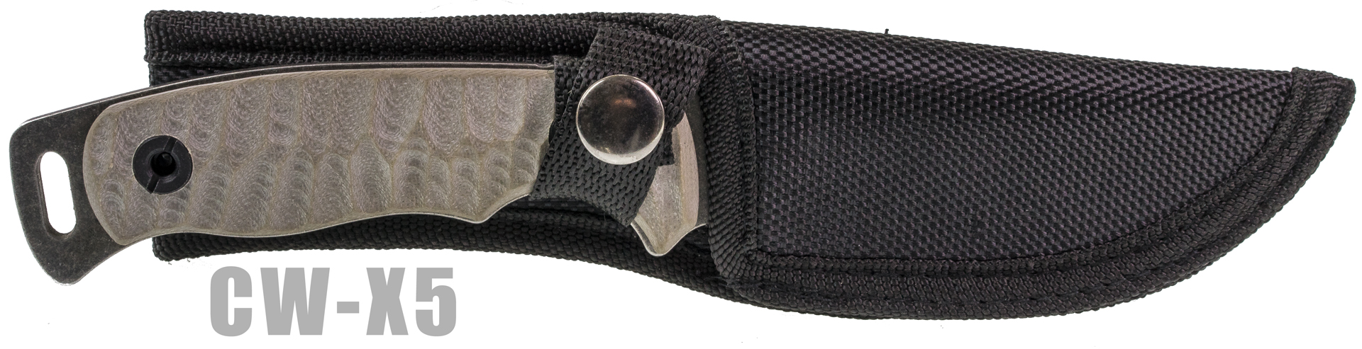 Fodero in nylon con chiusura a bottone automatico e passante per cinturone Impugnatura in polimero color tan Lama in acciaio inox Lama e corpo monopezzo Foro sulla parte finale dell'impugnatura Lunghezza Lama: 90 mm Spessore Lama: 4 mm Lunghezza Totale: 205 mm