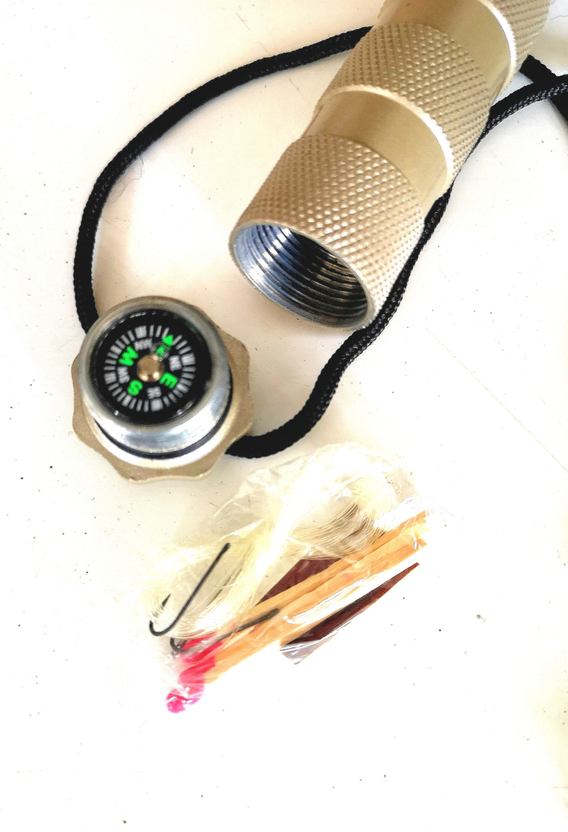 Set di sopravvivenza set da pesca, ago, fiammiferi, mini bussola