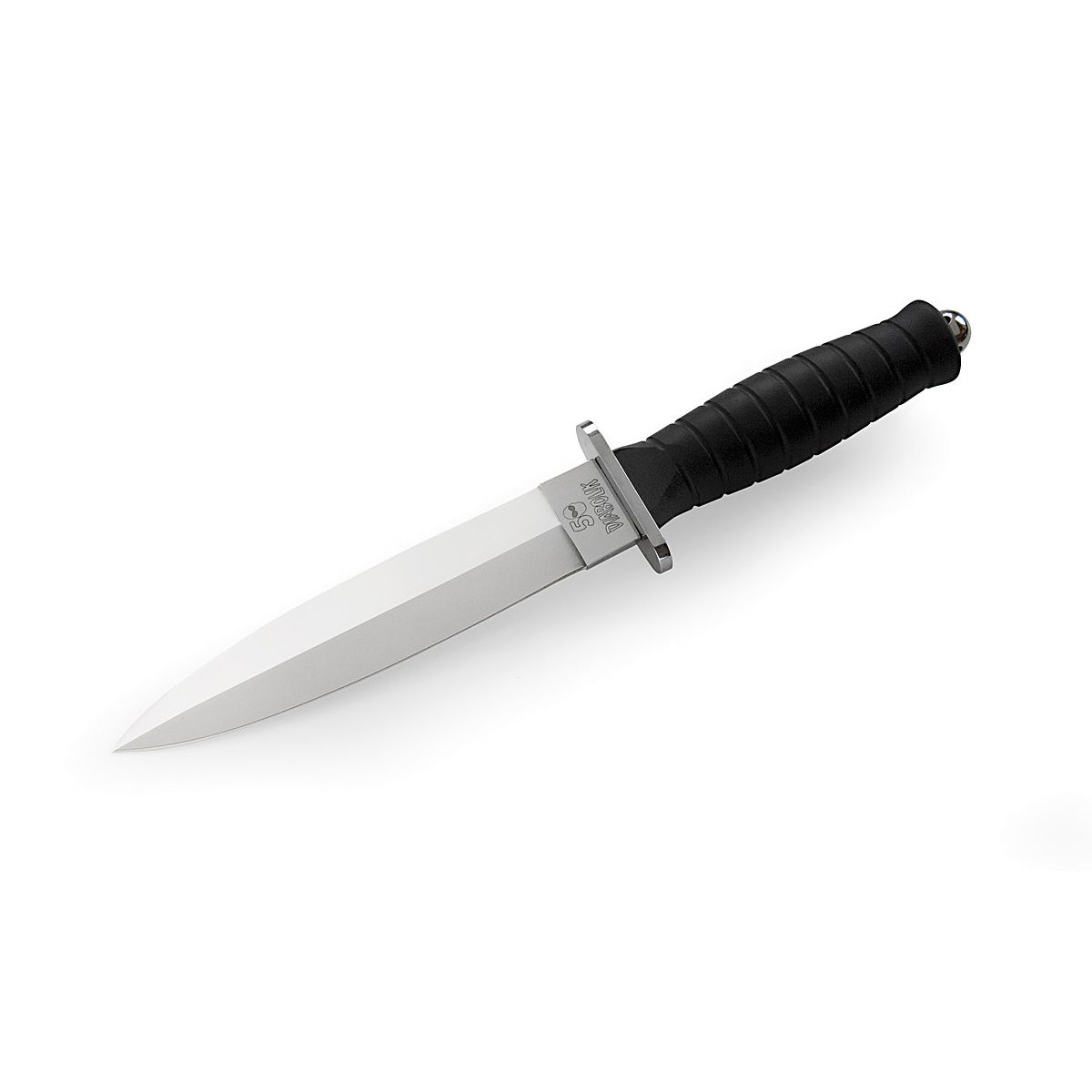 produttore Maserin Italia affilato solo da un solo lato , per poter impugnare la lama durante il lancio lama fissa Lunghezza lama: 16,0 cm Lunghezza impugnatura: 11,5 cm (con sfondacristalli) Lunghezza totale: 27,5 cm Materiale lama: acciaio inox 440 Spessore Lama: 3,5 mm Materiale impugnatura: TPE Materiale fodero: Nylon Peso: 210 gr