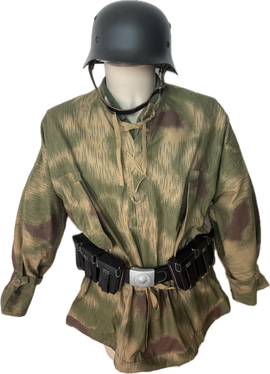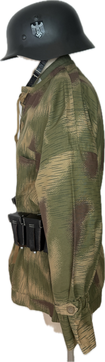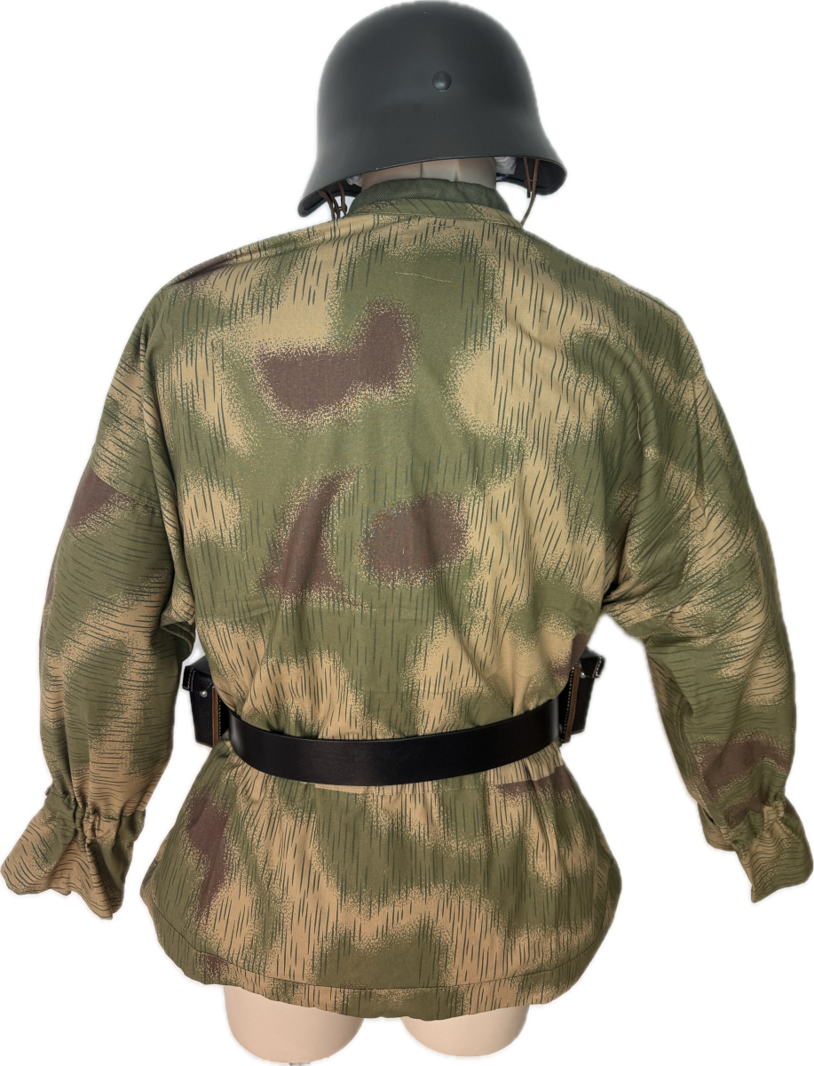 Blusa mimetica leggera in 100% cotone, fedelmente riprodotta dal modello utilizzato dalla fanteria tedesca durante la WWII. Vestibilità ampia, apertura frontale con laccio, coulisse in vita, polsini regolabili con bottoni e aperture ascellari per l’aerazione. Mimetismo Sumpftarn storicamente corretto.