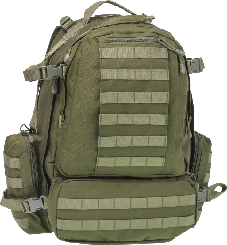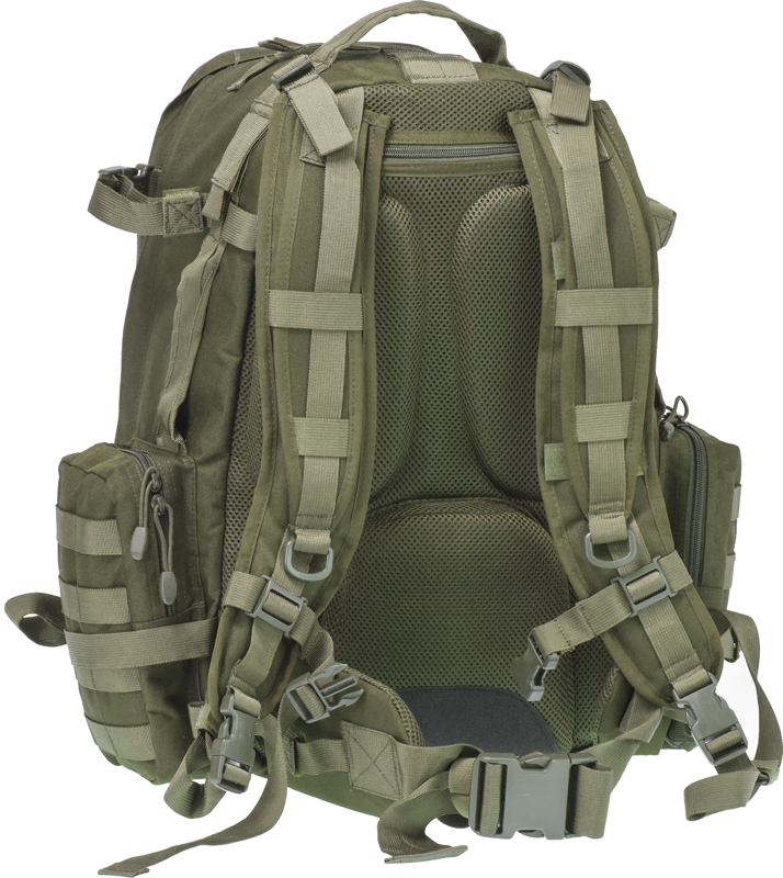 in nylon da 1000 denier capacità 60 litri esterno rivestito con attacchi molle 3 maniglie di trasporto e recupero e tra queste quella superiore la puoi utilizzare come maniglia di evacuazione parte dorsale preformata per il massimo confort con una cerniera per rimuovere lo schienale ed inserire eventuali piastre balistiche (non incluse) spallacci imbottiti regolabili in altezza dotati di due anelli d-ring per l'ancoraggio rapido cinghia elastica pettorale e fascia lombare imbottita lo zaino è composto da un comparto principale completamente apribile tramite cerniera silenziata con tiretto in cordino sullo schienale del comparto principale vi sono quattro cinghie con fi bbia fastex e tre occhielli in fettuccia di nylon per la ritenzione e l'ancoraggio degli accessori e sulla parte interna della patta sono posizionate due tasche a rete richiudibili tramite cerniera nel modulo centrale è inoltre posizionata lateralmente una tasca verticale a scomparsa richiudibile con cerniera silenziata sulla patta principale è inoltre posizionata la tasca secondaria in una parte della tasca sono posizionate tre tasche a scomparsa, due inserti porta giberne per cal. 5,56 con laccetto elastico a nastro a strappo, un laccetto con gancio e tre inserti porta penne nella parte inferiore dello zaino è posizionata una tasca longitudinale richiudibile con cerniera e contenente in una parte una tasca a rete con divisore e nell'altra parte una tasca richiudibile con cerniera sempre nella parte inferiore dello zaino e rispettivamente a destra ed a sinistra sono posizionate due tasche verticali richiudibili tramite cerniera silenziata con cordino la base dello zaino è accessoriata con quattro asole per l'applicazione di due cinghie di compressione ogni tasca è accessoriata da fori di drenaggio e nella tasca principale tre aperture garantiscono l'uscita di antenne, cavi radio e tubi di idratazione personale il corpo dello zaino è comprimibile tramite quattro cinghie e fibbie fastexx