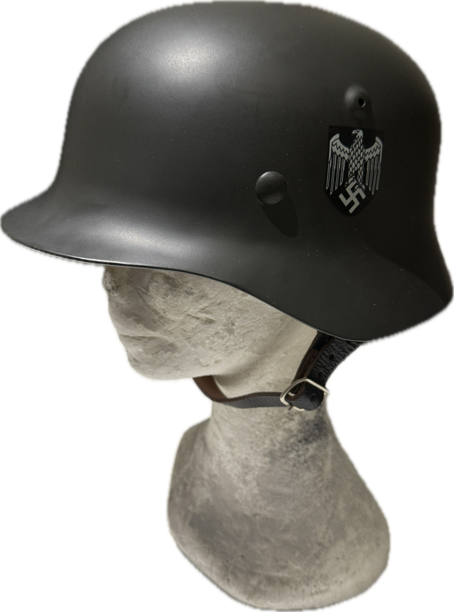 Riproduzione nuova del celebre elmetto tedesco Modello M40, utilizzato dai reparti della Wehrmacht durante la Seconda Guerra Mondiale. L’articolo è realizzato con cura per ricreare fedelmente forma, materiali e dettagli costruttivi dell’originale, ideale per scenografia, rievocazioni storiche, collezionismo o uso cinematografico.
