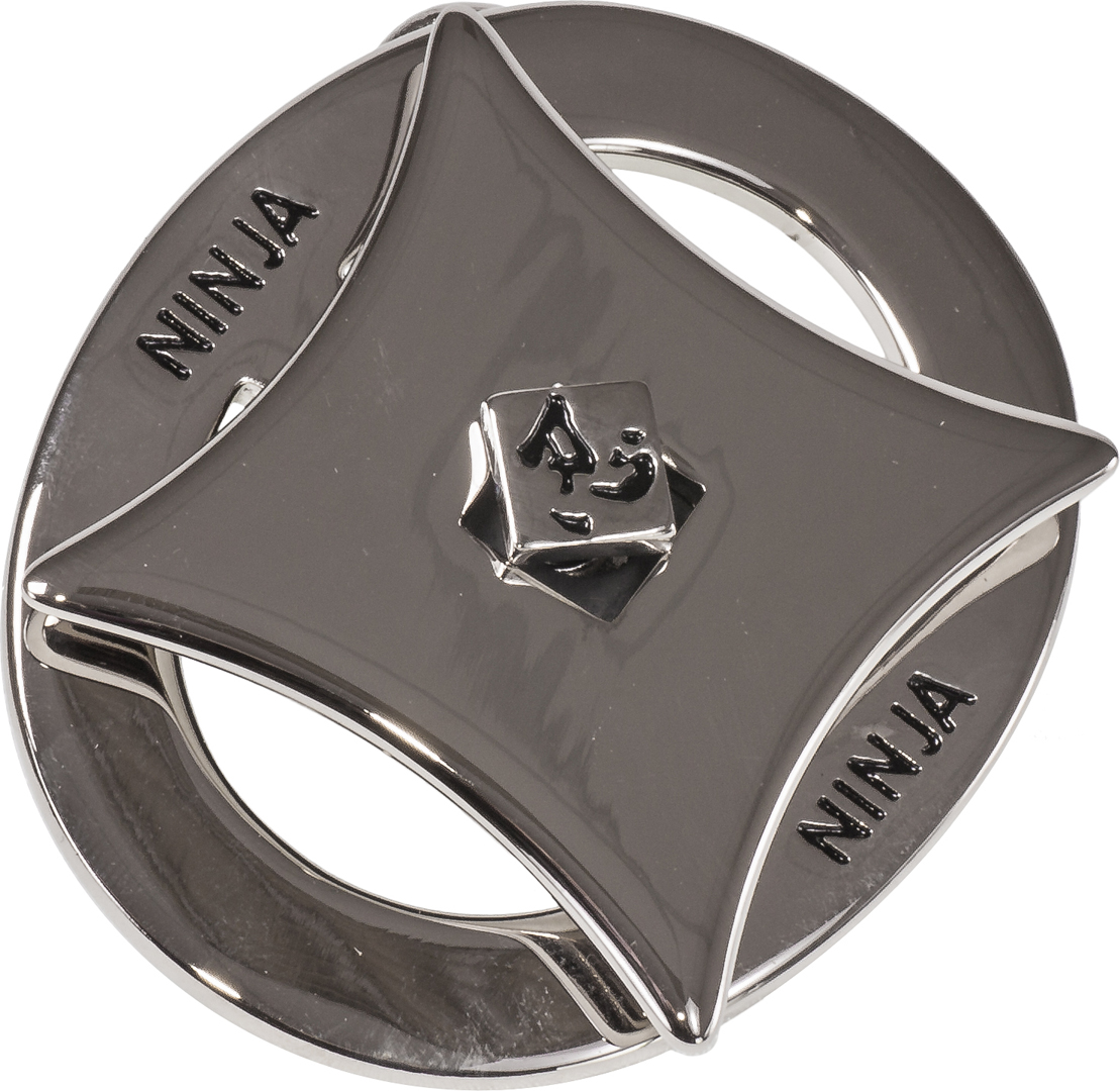 Universale Interamente in metallo pieno nickelato chiaro La parte anteriore ruotando si stacca e diventa una shuriken da lanciare sul bersaglio Non affilata Dimensioni 8x6 cm