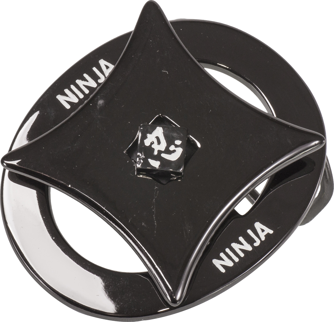 Universale Interamente in metallo pieno nickelato scuro La parte anteriore ruotando si stacca e diventa una shuriken da lanciare sul bersaglio Non affilata Dimensioni 8x6 cm