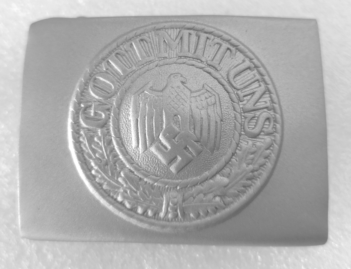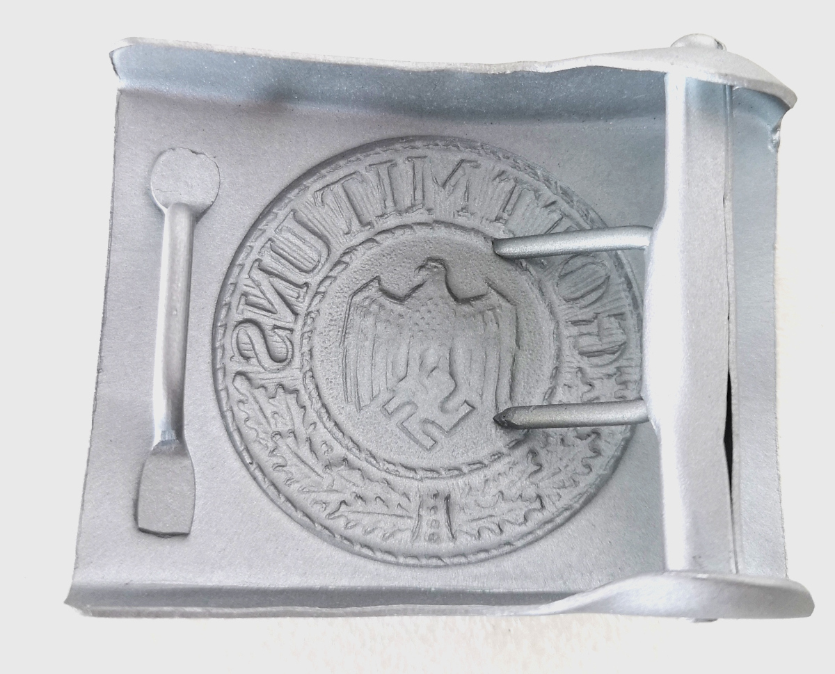 riproduzione fibbia in dotazione alle forze armate della Wehrmacht, durante la seconda guerra mondiale lamierino in metallo pressato monopezzo lavorazione di qualità superiore lunghezza 65 mm altezza 45 mm peso 45 gr