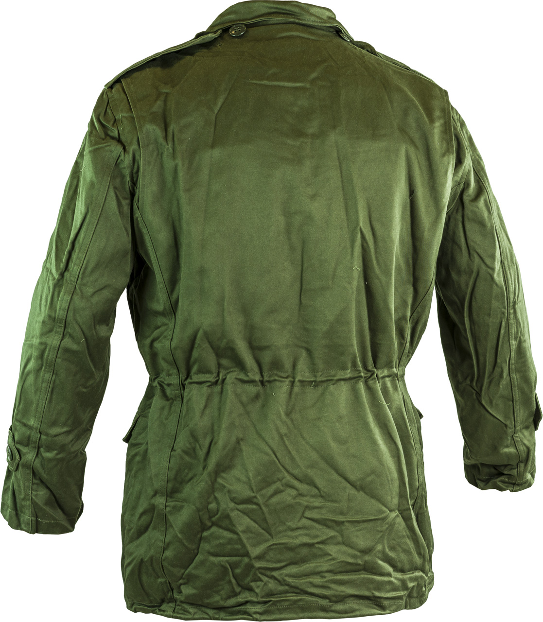 Us Army WWII War M 1943 colore verde scuro fabbricazione nazionale greca composizione esterno 100 % cotone composizione fodera interna 100% cotone 4 tasche a soffietto anteriori chiuse da bottoni cordino con coulisse in vita per stringerlo polsini chiusi da bottoni chiusura anteriore tramite bottini imbottitura non inclusa ex dotazione esercito greco anni 1970 capo invernale in dotazione per impieghi tattici operativi campali