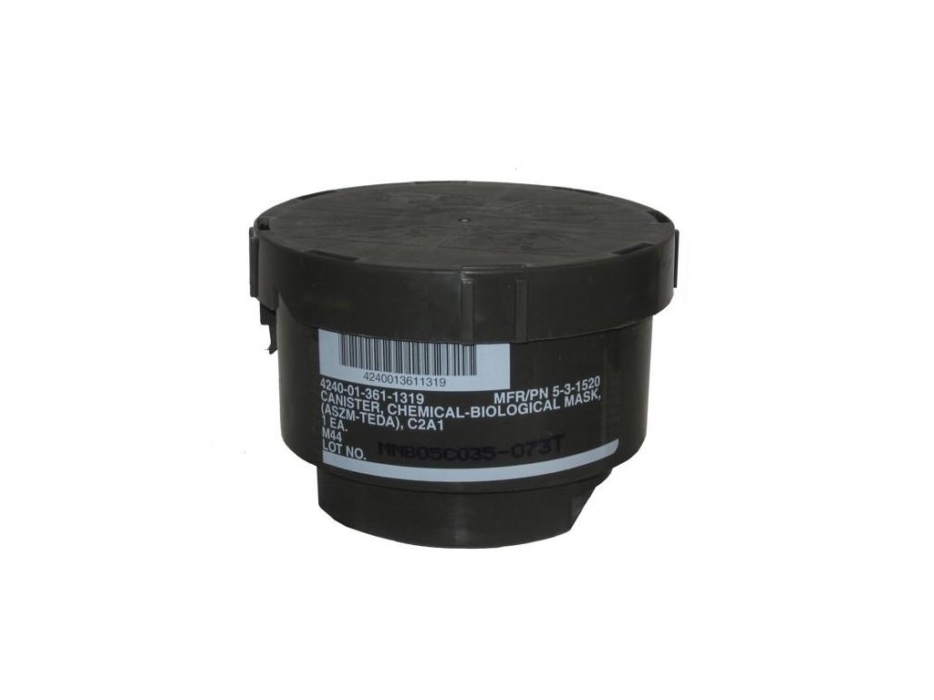 canister chemical biological mask ricambio per maschera Antigas nuovo con imballo originale sigillato per maschera antigas US army involucro esterno in polimero verde scuro interamente in metallo verde verniciato traslucido corpo con modanature in rilievo antiurto tappo in gomma sul fondo NB privo di certificazioni compatibile con M40, M43 M48, M45, MCU2 viene venduto come pezzo inerte non per essere utilizzato peso 245 gr