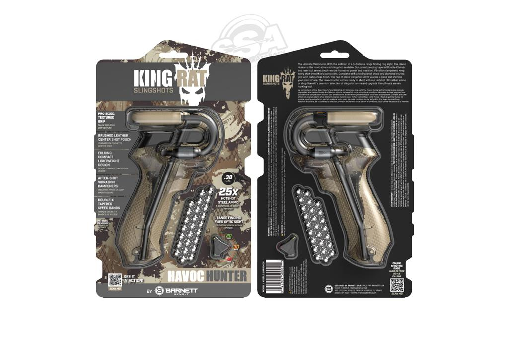 Fionda di nuova generazione con grip in polimero a due densità per aumentare l'ergonomia. Elastico di nuova generazione con doppia densità della gomma consente un maggiore allungo ed eroga una potenza superiore del 30% ad un tradizionale elastico. Fondello dell'elastico in vera pelle. La confezione contiene 25 sfere in acciaio calibro .38 Il mirino ha la fibra che catalizza la luce ambientale illuminandosi con tre diversi colori per 3 distanze di riferimento 20-30-40 yards L'appoggiabraccio è pieghevole imbottito in neoprene. La struttura assorbe e disperde le vibrazioni del tiro. Peso 345 gr