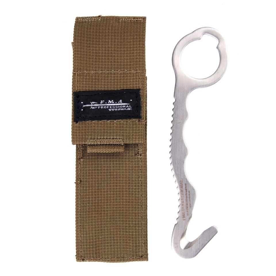 FMA gancio paracadute. Materiale: Acciaio inossidabile satinato antiriflesso lunghezza 16,5 centimetri Funzione: gancio corda paracadute, apribottiglie, strumento multifunzionale. fodero in cordura verde con passante per cintura ideato per tranciare i cavi del paracadute in caso di necessità