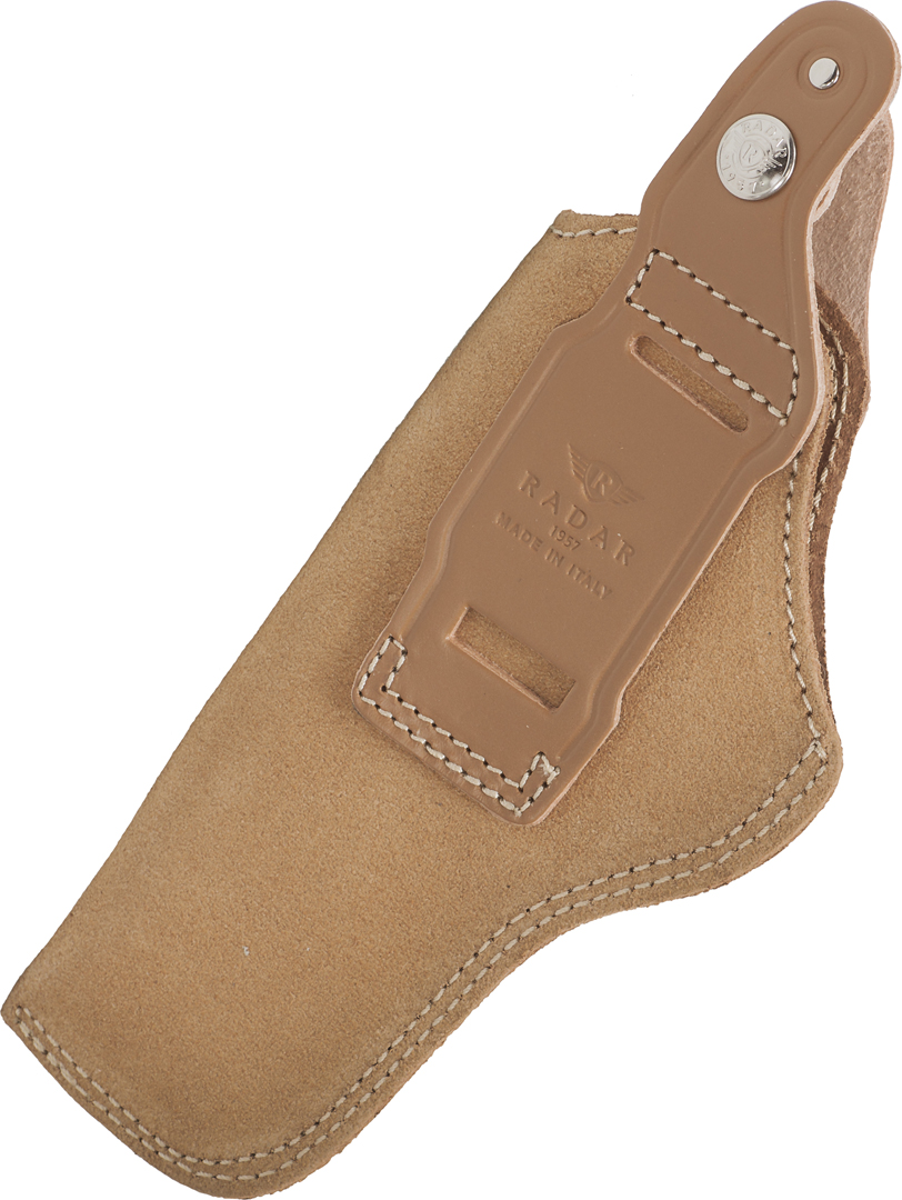 Grazie ad una speciale molla estraibile in acciaio, da inserire a scelta in uno dei due passanti fissi in cuoio posti su ogni lato della fondina, l'arma può essere portata sia internamente che esternamente, sia a destra che a sinistra
