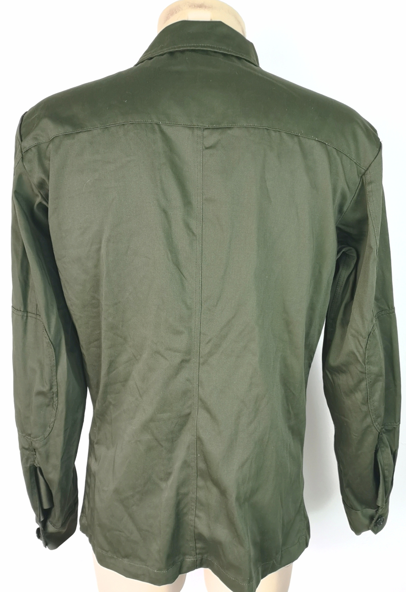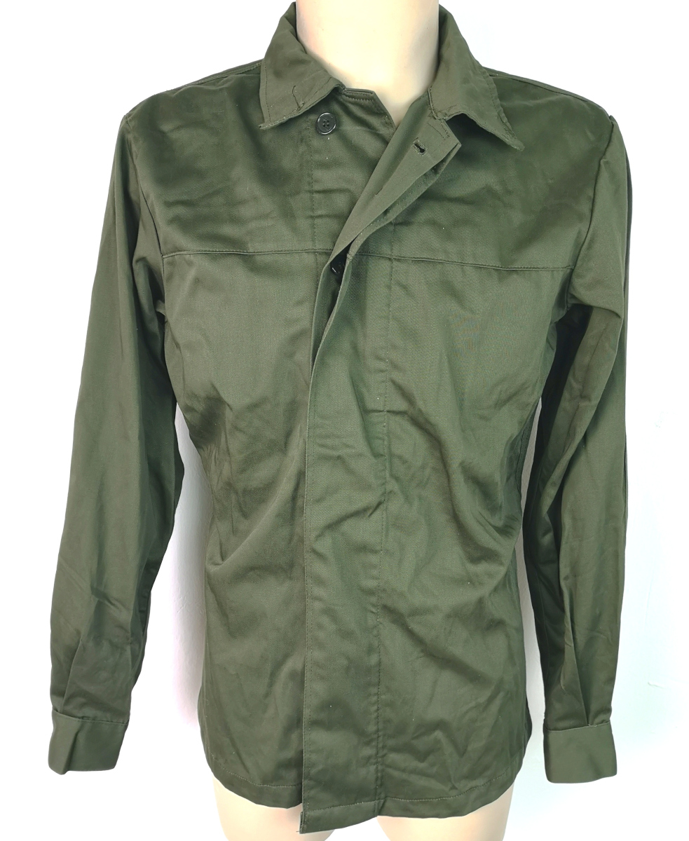 Originale ex dotazione Esercito Italiano anni 1990 95 N.B. vestibilita aderente il taglio e sfiancato l'ampiezza si riduce sui fianchi spallone con doppio tessuto di rinforzo superioe chiusa anteriormente da bottoni coperti protetti tessuto antifruscio morbido composizione mista 65% cotone 35 % poliestere Ricondizionata usata prima scelta Gomiti rinforzati con lo stesso tessuto 2 tasche interne chiuse da bottoni Aperture di aereazione ascellari Polsini chiusi da bottoni usata per la prima volta nella missione vespri siciliani e missione Ibis Misura girotorace