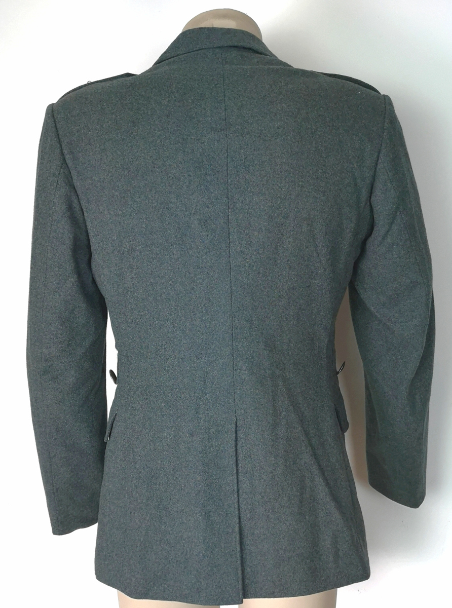 La giacca in oggetto è molto datata ,presumiamo intorno agli anni 40, la mostreggiatura ci indica che è della fanteria Sui bottoni metallici abbiamo le tre corone in rilievo La giacca ha un eccellente vestibilità diremmo sartoriale i materiali sono di buona fattura originale ex dotazione Esercito Svizzero usata prima scelta tessuto tipo panno di lana (colore grigioverde ) vestibilità aderente foderata internamente due tasche interne asola per appenderla bottoni in polimero colore grigioverde con croce elvetica in rilievo peso 770 gr circa NB: Potrebbe essere mostreggiata con gradi e mostrine taglie : XS girotorace 92cm lunghezza manica 57 cm S girotorace 100 cm lunghezza manica 59 cm M girotorace 112 cm lunghezza manica 69 cm L girotorace 128 cm lunghezza manica 62 cm XL girotorace 130 cm lunghezza manica 63 cm XXL girotorace 144 cm lunghezza manica 69 cm