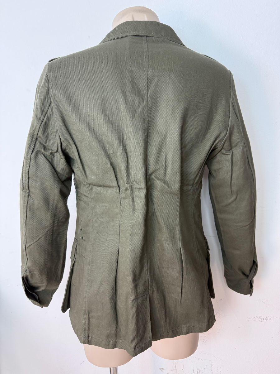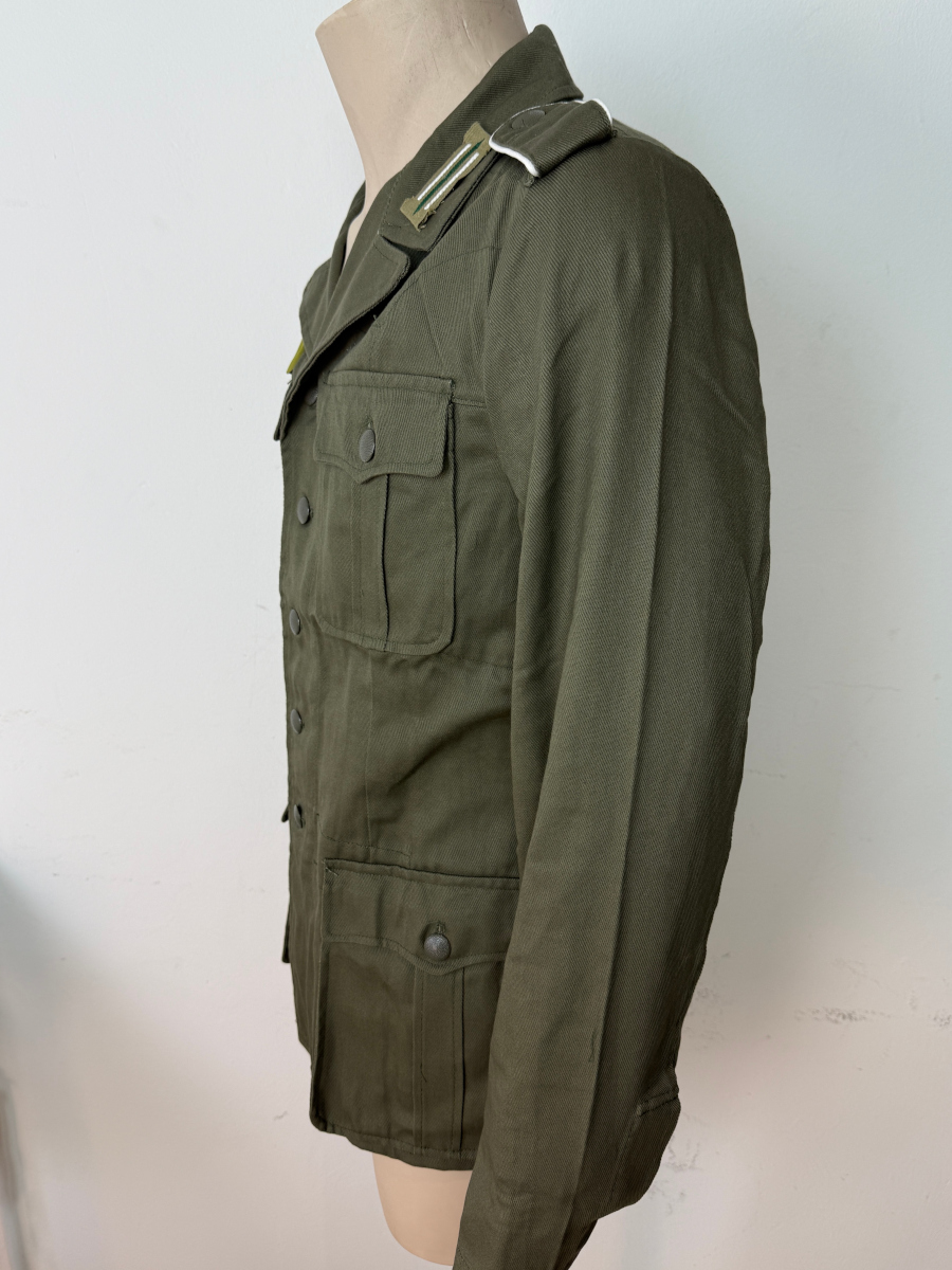 Giacca coloniale da truppa fedelmente ricostruita, ispirata al modello originale in dotazione all’Afrika Korps della Wehrmacht durante la Seconda Guerra Mondiale. Progettata per climi caldi, questa uniforme si distingue per il taglio comodo e il tessuto leggero in cotone, ideale per l’impiego operativo sul fronte africano e italiano.