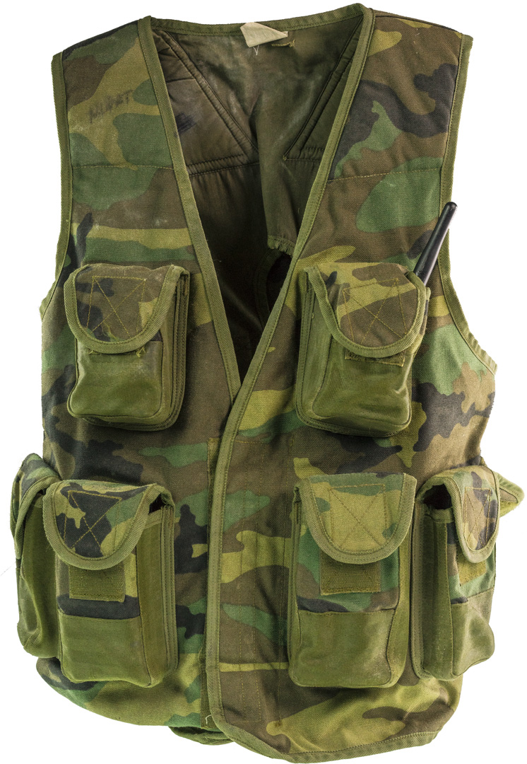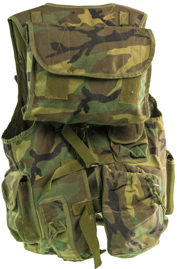 Questo Gilet ricorda nella forma quelli occidentali costruiti in cordura materiale troppo costoso da produrre per le povere finanze croate . Resta comunque un solido capo efficente per quello che doveva servire , questi equipaggiamenti venivano prodotti privi di ettichette con materiali provenienti da diverse fonti , quindi difficili da catalogare . In questo caso ci sembra indubbia la sua autenticita' ,in quanto alcuni pezzi riportano scritte date nomi con piccole personalizzazioni tipiche del periodo. L'accuratezza e la disposizione delle tasche e la sua tipologia , fanno pensare ad un capo ideato per reparti con compiti speciali di commando o similari . La sua solidita i tessuti doppi indicano la capacita' di carico che necessita a chi deve operare in profondita nelle linee nemiche, sul retro notiamo anche una sacca recupera caricatori esausti .
