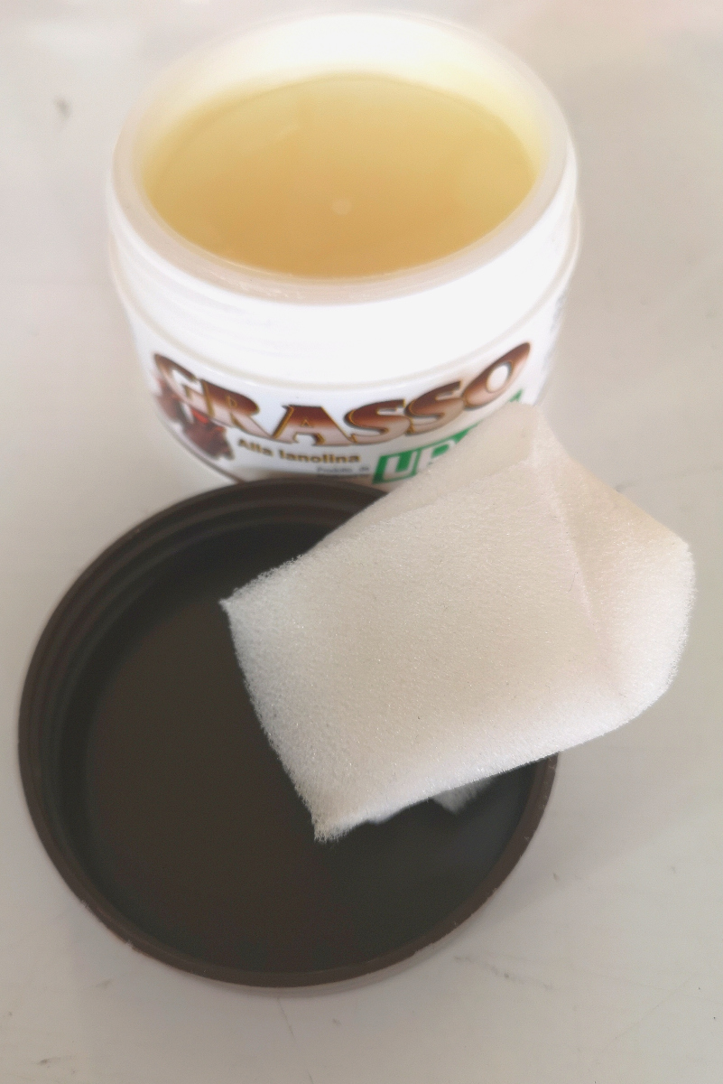 Prodotto alla lanolina particolarmente indicato per calzature ed attrezzi sportivi, scarponi da montagna ecc. Gli oggetti trattati riacquisteranno la loro morbidezza, saranno nutriti, protetti e resistenti agli agenti esterni. Uso: Pulire l'oggetto da trattare. Stendere il prodotto con la spugna acclusa nella confezione. Lasciare asciugare. scatola in polimero con tappo a vite riutilizzabile Formato 100 ml – Neutro