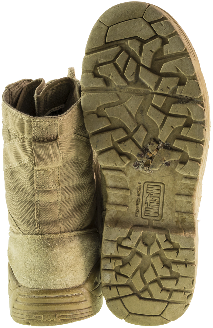Usati seconda scelta Originali British Army NB potrebbero avere graffi segni e tracce di sabbia in cuoio e cordura 1150 denari per climi desertici fodera interna in breathe right per ottimizzare la traspirabilità e la comodità sistema di allacciatura veloce suola antiscivolo trattamento antibatterico agion suoletta interna removibile altezza media stivaletto 25 cm altezza suola minimo 3 cm massimo 4 cm NB articolo usatosurplus militare non certificabile