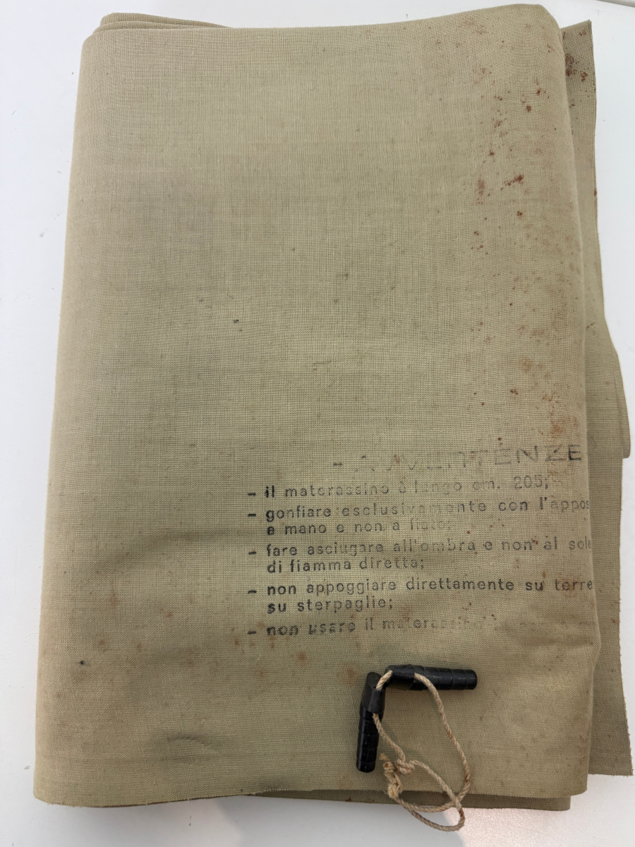 Nota bene: pur essendo nuovo da magazzino, possono essere presenti piccole macchioline superficiali dovute a oltre 30 anni di stoccaggio. Non compromettono in alcun modo il funzionamento o l’integrità del materassino.