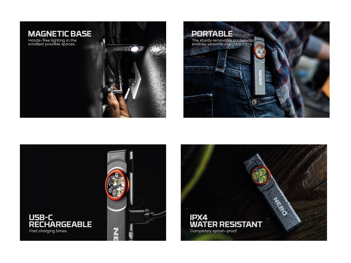 La NEBO Slim Mini è una torcia compatta e ultra sottile progettata per un utilizzo quotidiano pratico ed efficiente. Il design tascabile e leggero consente di portarla facilmente ovunque, mentre la clip resistente e la base magnetica la rendono estremamente versatile per l'uso a mani libere.