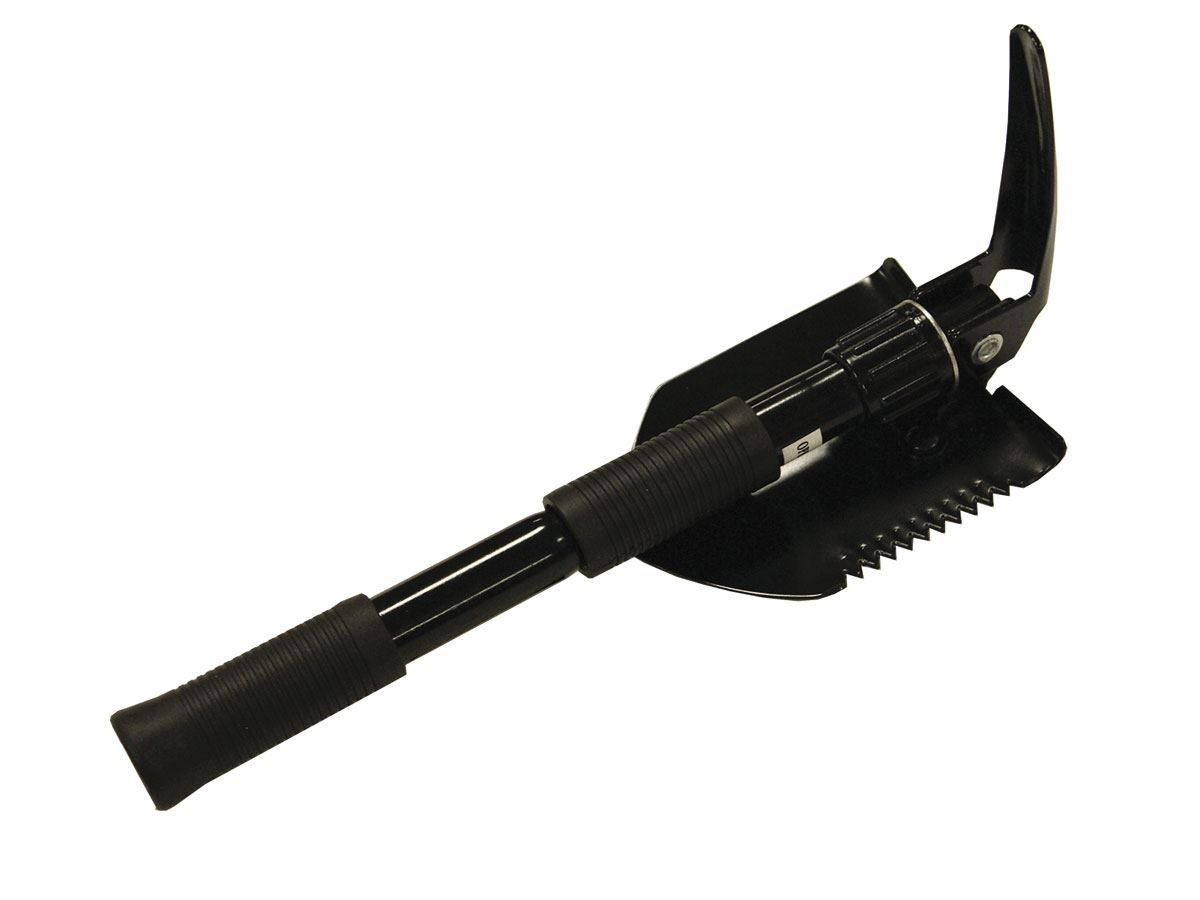 può essere usata come una pala e può essere convertita rapidamente in un piccone. bordo seghettato sulla lama della pala offre un'eccellente potenza di taglio. il manico in gomma a vite permette una presa ottimale anche in condizioni climatiche avverse costruita in acciaio inossidabile protetta da rivestimento di ossido nero per la resistenza alla ruggine Viene fornita con una custodia in nylon nero