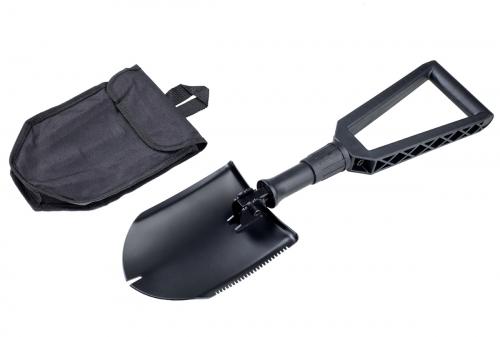 Pala militare degli Stati Uniti modello 2. pieghevole in tre modalita' minimo ingombro portapala in nylon nero incluso passante per metterlo sulla cintura Il lato seghettato può essere utilizzato come sega bordi scanalati per agevolare lo scavo e antiscivolo Bloccaggio della lama a forcella con tappo a vite Include tasca con nastro a strappo replica Materiale: