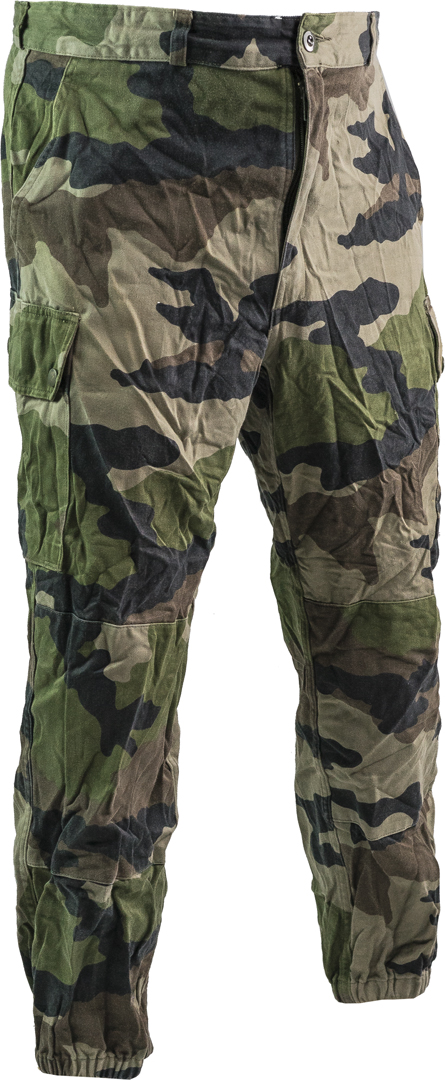 Non e' stato riparato, chi procede all'acquisto deve provvedere in modo autonomo alla riparazione vestibilita' aderente adatta ad altezze medie CCE (central european camoflage ) originale ex dotazione Armee Francaise patta chiudibile con cerniera lampo e bottone caviglie elasticizzate due tasche diagonali alla cintura due tasconi laterali chiudibili Ginocchio rinforzato Le taglie fanno riferimento alla misura del girovita