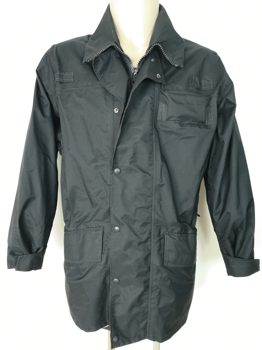 Usato prima scelta NB: La pattina sopra la tasca sinistra è stata rimossa con il logo originale ex dotazione Polizia Inglese anni 2000 colore nero due fettucce pettorali porta torcia /badge 100% gore-tex impermeabile traspirante chiudibile tramite chiusura lampo e cursore lampo con doppio cursore doppia lampo laterale per estrazione armi rapida passanti per spalline porta gradi (spalline non incluse ) ampiezza del girovita regolabile da elastico munito di cursore due tasche sul petto una verticale con lampo una orizzontale due tasche basse ad altezza vita con chiusura nastro a strappo apertura centrale a zip ampiezza maniche regolabile da chiusura a nastro a strappo vestibilità ampia lunghezza tasca petto 28 cm dx larghezza tasca petto 18 cm dx lunghezza tasca petto 18 cm sx larghezza tasca petto 15 cm sx lunghezza tasche vita 20 cm larghezza tasche vita 22 cm peso 800 gr circa