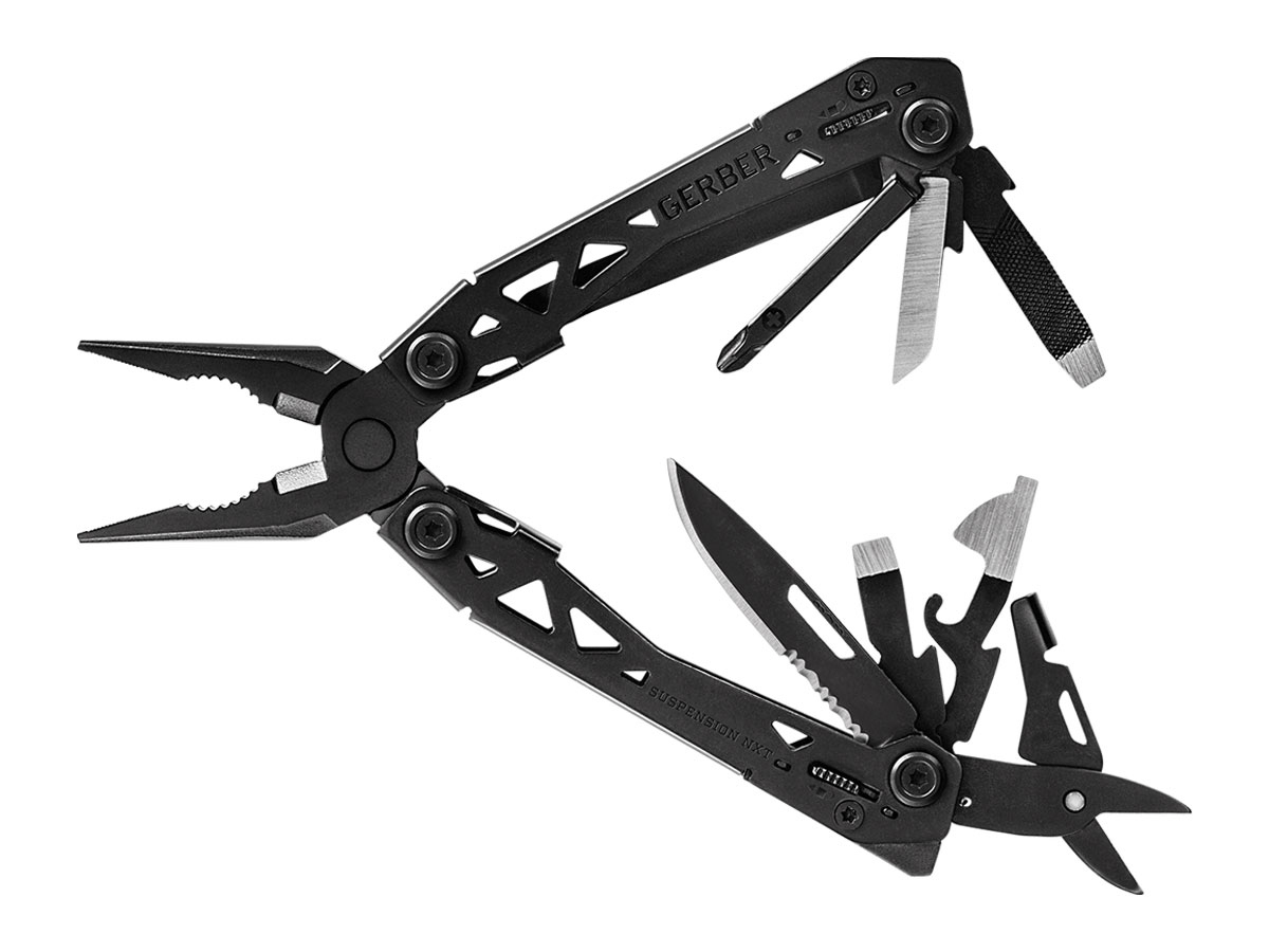 La Suspension NTX è un'evoluzione dell'originale pinza multiuso. Costruita in acciaio inossidabile, ha una pinza niddle nose (a becchi lunghi) ed altri 14 componenti fissati in un comodo stile a farfalla. E' dotata di una clip da tasca per essere portata in tasca o alla cintura. Speficiche tecniche: