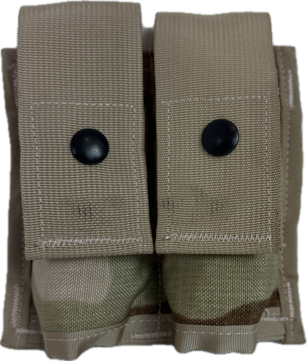 Tasca porta granate originale USGI, surplus dell’Esercito Americano, parte del sistema M.O.L.L.E. in mimetismo desertico DCU a tre colori. Articolo nuovo di magazzino, mai utilizzato.