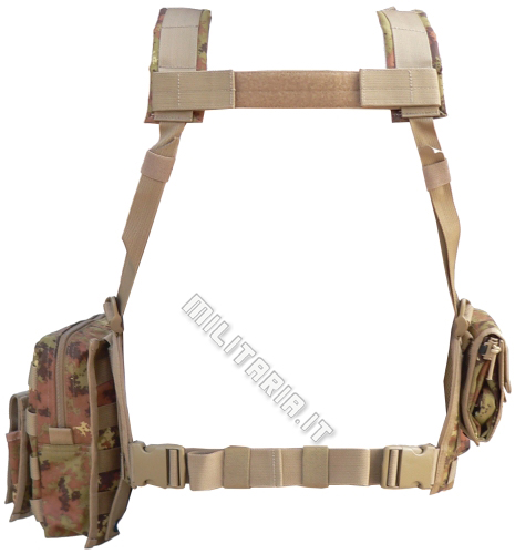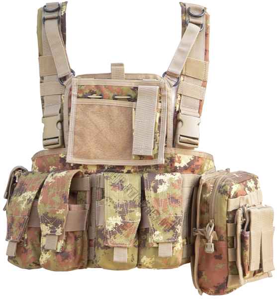costruito con capitolato militare tattico molle (tutte le tasche sono staccabili ) 2 anelli metallici antiriflesso 4 tasche portacaricatori universali 22x7x6 1 tasca porta razione k espandibile 12x12x22 1 tasca con nastro a strappo portanome gruppo sanguigno 18x16 1 tasca portatutto 22x18x6 1 tasca interna portamappa 15x15 1 tasca a rete interna 19x17 2 taschine portautensili con zip 12x12x4 interno a rete antisudore tascone portaplacca balistica taglia unica universale regolabile in altezza e in lunghezza tramite fastex cordura 1000 denari larghezza 85 cm altezza 38,5 peso 1625 grammi