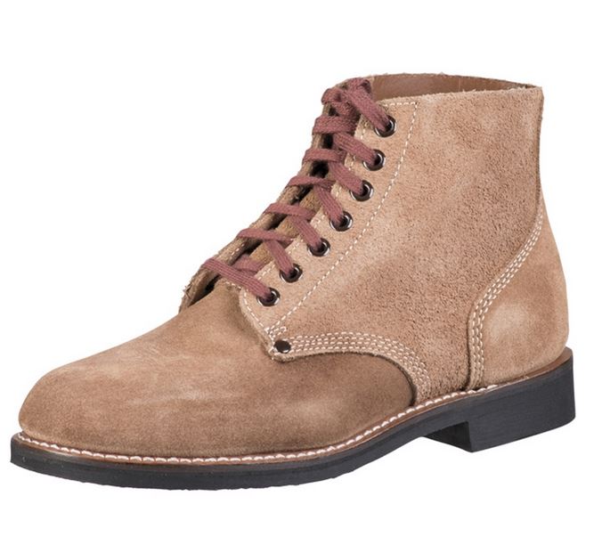 riproduzione scarpone Esercito Americano anni 40 Materiale superiore: 100% pelle scamosciata Suola: gomma Suola interna: 100% pelle di vacchetta Lacci: 100% cotone spedibili in 7 gg Allacciatura a 7 fori suola spessa con un piccolo tacco