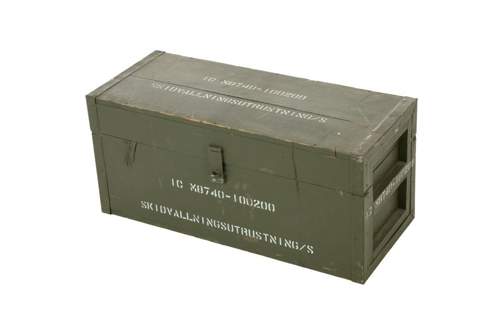 Cassa in legno originale, ex dotazione dell’Esercito Svedese, destinata alla manutenzione e riparazione degli sci militari.