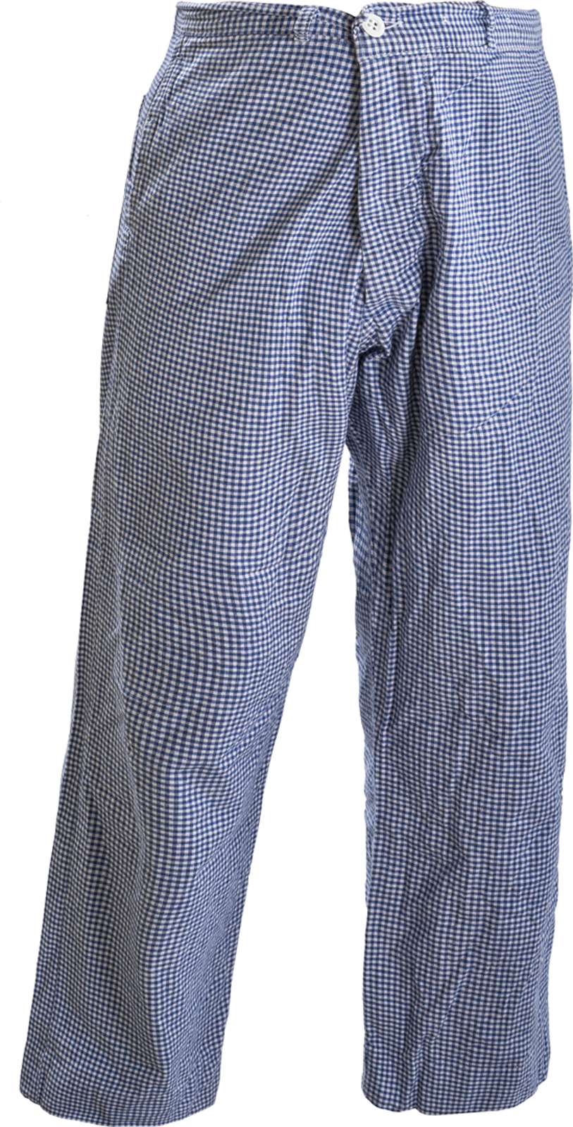 pantaloni da cuoco chiusi da bottone usati originali ex brithis army anni 2000 in cotone 100% colore blu/bianco o nero /bianco secondo disponibilita hanno un peso ideale per mantenere il fresco durante il lavoro due tasche superiori girovita chiuso da bottone tasca posteriore Peso 355 grammi