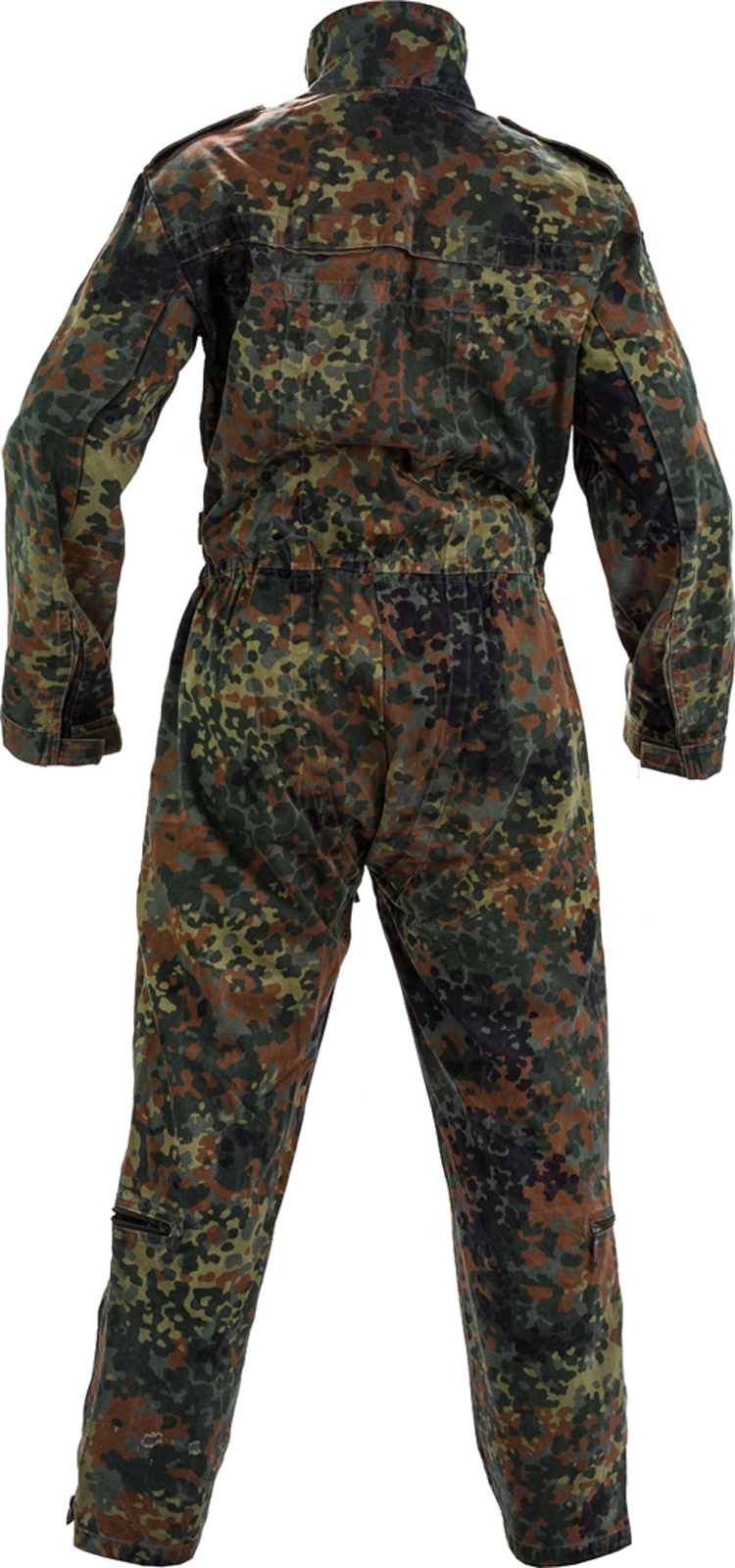 BW Panzerkombi Originale ex dotazione Esercito Tedesco anni 90 Polsini chiudibili a nastro a strappo Cerniera lampo centrale Dotata di 6 tasche chiuse da cerniere lampo 8 fori di areazione all'inguine entrambe le gambe 7 fori di areazione sotto entrambe le braccia Possono avere dei piccoli rattoppi Cordino con doppi cursori a morsetto sulla vita internamente Apertura a nastro a strappo altezza spalle per accedere al maniglione di estrazione di emergenza Spalline con nastro a strappo Asolina all'altezza della nuca per appenderla Composizione 80% cotone 20% poliestere Peso 1,250 Kg Le misure si riferiscono all altezza e al girotorace