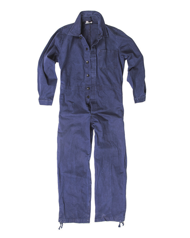 usata prima scelta Surplus Militare tedesco addetti reparti meccanici (Bundswher) Originale anni 1990 Ex dotazione Germania ovest fettuccia per appenderla apertura con bottoni o cerniera lampo taschino anteriore pettorale a toppa due aperture verticali laterali chiuse a bottone (servono per accedere all'interno) Polsini chiudibili con bottone caviglie chiudibili con bottone o cerniera lampo o laccetti 100% cotone Peso 955 gr