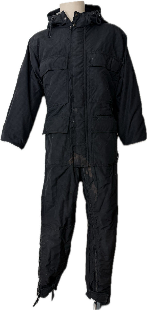 Tuta termica integrale in dotazione alla Polizia del Quebec nei primi anni 2000. Progettata per offrire protezione e isolamento in condizioni climatiche estreme, da +60°C a -40°C, è ideale per ambienti freddi e operazioni invernali ad alta intensità.