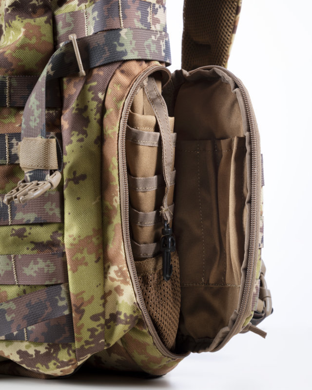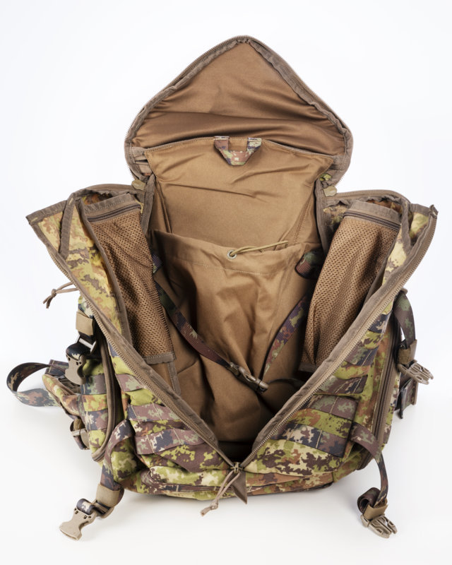 Zaino 50 litri apertura totale del vano principale vano prinicipale con cinturino elastico per stoccaggio abiti 2 tasche laterali webbing molle spallacci e cinturone imbottiti e regolabili Nylon 600D